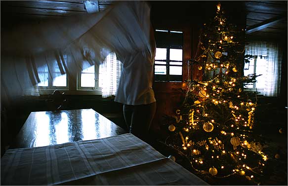 W środku świeci już choinka, ubierali do szóstej rano, kiedy goście posnęli. Jadalnia pęcznieje kolędami. Kierowca znika na górze. Schodzi po schodach pan Adam, właśnie skończył wigilijne dekoracje, została jeszcze konserwacja, jakieś gniazdko, kabel, poprawki, drobiazgi. Wszystko ma być na błysk, lata więc po chałupie, patrzy - co jeszcze. Zapomniał nawet, że ma dziś imieniny, powiedzą mu dopiero przy wieczerzy. Będą przy choince śpiewać, wyciągać go z korytarza. Teraz jeszcze pracuje. Adam - złotnik z Wrocławia, przyjechał tu przeszło pięć lat temu, zajrzał, żeby odpocząć, został na zawsze - jak wielu innych. Kiedyś chodził po płaskim asfalcie, stał w korkach, pił chlorowaną wodę. Teraz remontuje "Samotnię", w przerwach opowiada. Mówi, że najcięższy czas to początek zimy. Myślisz - czy śnieg przyjdzie pierwszy, czy mróz. Bo jak najpierw chwyci mróz, to zamarznie ujęcie wodne. Raz już przyszło na Sylwestra pływać w wodzie, kopać, rozmrażać, targać rury. Znajomi pomogli, zdążyli do jedenastej wieczorem. Tym razem problemów z wodą nie ma - na szczęście, bo coraz trudniej prosić gości o pomoc - wielu tylko wymaga, żąda, oczekuje komfortu, zabawy, "Vivy" i MacDonalda. Mniej już dawnych turystów, coraz dłuższe martwe sezony.