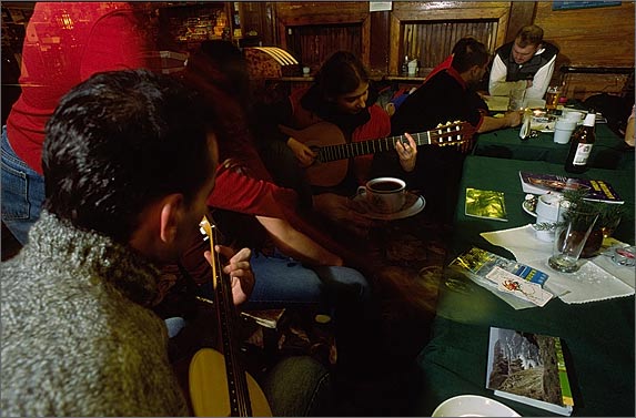 "Ktoś powiedział, że tu nie ma miejsc. Jest tylko czas. Inne światło, inna pora dnia... Góry żyją. A «Samotnia» trwa" - mówi Krzysztof Piwnicki, dziennikarz, który wszedł właśnie na górę, siadł, pije herbatę. Za oknem widać skalisty kocioł, przybielony staw, kosodrzewinę zagrzebaną w śniegu. W środku jest tylko gwar, wrzątek, piwo, ludzie. Krzysztof tonie w ciepłym, żółtym świetle, znika w parującej herbacie, odkłada szklankę, mówi dalej: "Tu nie ma chęci posiadania, dążenia do celu - bo tu już nie masz do czego dążyć. Co tu możesz mieć lepszego? Masz buty, w których chodzisz, spodnie, które nie przemokną, kurtkę, która jest ciepła, do tego łóżko, jedzenie. Co więcej trzeba? Dlatego zawsze tu wracam. Wsiadam w Gdańsku w pociąg, potem autobus, potem idę z Karpacza - wszystko by spotkać się z ludźmi, nie zagubić podczas gonitwy na dole". Stygnie herbata. Przy bufecie Andrzej Gliński. Przyjechał ze Szczecina, tym razem na całe Święta, zwykle trafia tu na jeden dzień - nocny pociąg, rano schronisko, wieczorem powrót do pracy. Tak, efekt "Samotni" potęguje się przy każdym kolejnym pobycie. Grań, księżyc, śnieżne nawisy... "Ot, taki przykład" - opowiada - "Przekładaliśmy z Józkiem-góralem deski przy bardzo złej pogodzie - wiatr, mnie łamie w krzyżu, strach. Nagle rumor - butelka whisky spadła z dachu. Ktoś wystawił kiedyś za okno, żeby się zmroziła, zatonęła w śniegu, my dostaliśmy od "Samotni" nagrodę za przekładanie desek. Tu miejsce niezwyczajne". Kiedy pierwszy raz przyjechał tu na Święta - oszalała pogoda. Wiatr, wszyscy odcięci od prądu, pozrywane linie telefoniczne: "W «Samotni» tak wywiało, że musieliśmy tkwić w "trumnie" - pokoju na samej górze, tym najcieplejszym. Na parterze wytrzymać się nie dało. Gospodarze - państwo Siemaszkowie - przynosili jedzenie, my siedzieliśmy, graliśmy w karty, rozmowy, ja z małym dzieckiem... Tak, wielu tu takich, co nie są w stanie wyobrazić sobie świata bez «Samotni». Prócz tego są oczywiście przechodnie, co wstępują tu na piwo, czy herbatę i idą dalej. Niektórzy zostają - błysk - od pierwszego wejrzenia - jak u mnie. Zobaczyłem raz, zapadło w pamięć na zawsze".
